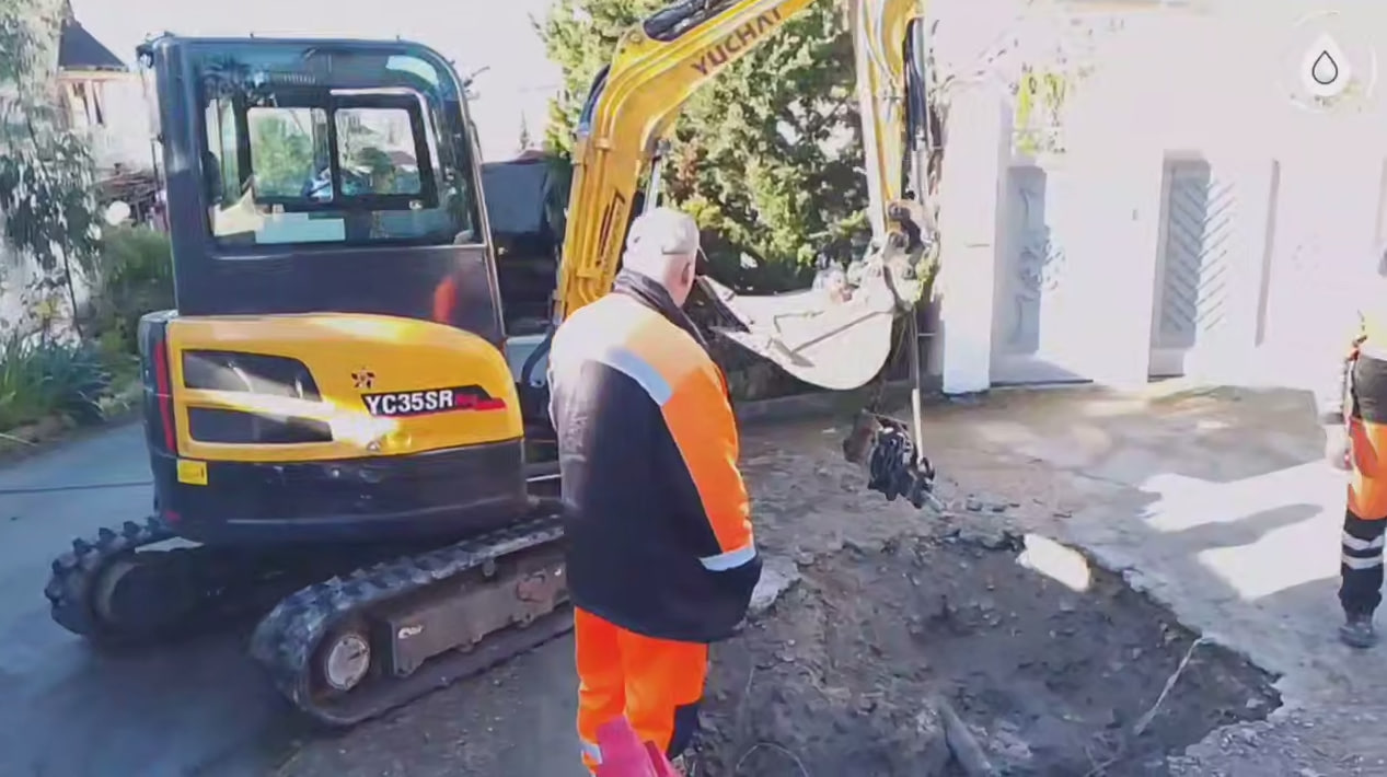 В ходе проведения земельных работ с помощью спецтехники обнаружено точное место повреждения на трубопроводе диаметром 110 мм, после чего специалисты приступили к устранению нештатной ситуации.