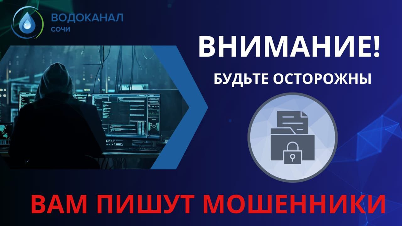 УВАЖАЕМЫЕ ГРАЖДАНЕ! В НАСТОЯЩЕЕ ВРЕМЯ УЧАСТИЛИСЬ СЛУЧАИ МОШЕННИЧЕСКИХ ДЕЙСТВИЙ СО СТОРОНЫ ЛИЦ, ПРЕДСТАВЛЯЮЩИХСЯ СОТРУДНИКАМИ МУП Г. СОЧИ «ВОДОКАНАЛ», ЦЕЛЬ ДАННЫХ ДЕЙСТВИЙ — ВЫМОГАТЕЛЬСТВО ДЕНЕЖНЫХ СРЕДСТВ НА ЯКОБЫ «ЗАКОННЫХ» ОСНОВАНИЯХ, НИ В КОЕМ СЛУЧАЕ НЕ ПЕРЕДАВАЙТЕ СВОИ ДЕНЕЖНЫЕ СРЕДСТВА ДАННЫМ ЛИЦАМ, ПРОВЕРЯЙТЕ ДОКУМЕНТЫ У СОТРУДНИКОВ ОБРАТИВШИХСЯ К ВАМ ПО ВОПРОСАМ ВОДОСНАБЖЕНИЯ И ВОДООТВЕДЕНИЯ.