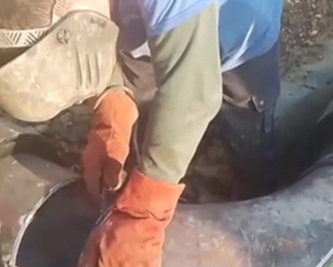 🚰 Производится важнейший этап по замене аварийного участка сети водоснабжения и спайки соединений трубопровода.