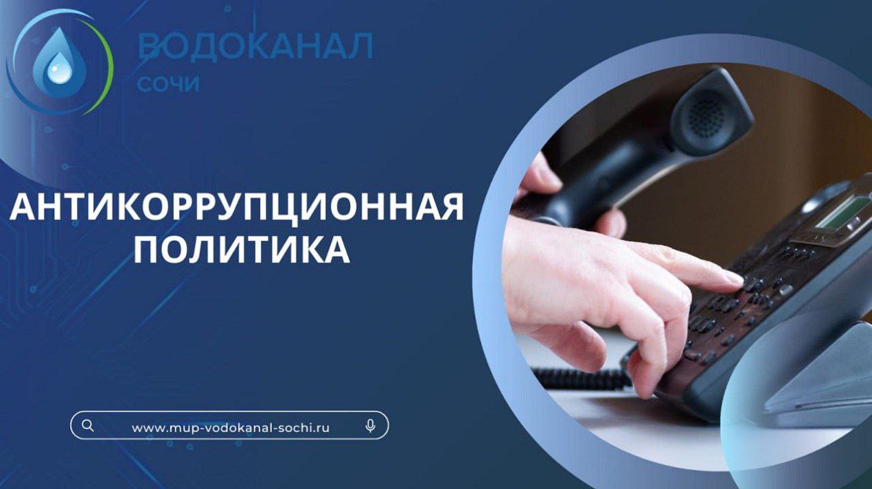 ТАКЖЕ ОБРАЩАЕМ ВАШЕ ВНИМАНИЕ НА АНТИКОРРУПЦИОННУЮ ПОЛИТИКУ ПРОВОДИМУЮ МУП Г. СОЧИ «ВОДОКАНАЛ»: ЕСЛИ К ВАМ ОБРАЩАЮТСЯ СОТРУДНИКИ ПРЕДПРИЯТИЯ И В ХОДЕ ОБЩЕНИЯ ОБСУЖДАЕТСЯ ВОПРОС ПЕРЕДАЧИ ДЕНЕЖНЫХ СРЕДСТВ ДАННОМУ СОТРУДНИКУ, ЗА НЕЗАКОННЫЕ ДЕЙСТВИЯ (ЛИБО БЕЗДЕЙСТВИЯ) С ЕГО СТОРОНЫ, ЛИБО СО СТОРОНЫ ДРУГИХ ДОЛЖНОСТНЫХ ЛИЦ ИЛИ КОНТРОЛИРУЮЩИХ ОРГАНОВ, НЕЗАМЕДЛИТЕЛЬНО ОБРАЩАЙТЕСЬ С ДАННОЙ ИНФОРМАЦИЕЙ ПО «ТЕЛЕФОНУ ДОВЕРИЯ» СЛУЖБЫ БЕЗОПАСНОСТИ 8-928-258-72-72 ИЛИ ПО ТЕЛЕФОНУ КОЛЛ-ЦЕНТРА 444-05-05.