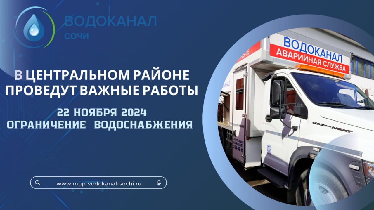 В связи с необходимостью производства важных ремонтных работ будет произведено ограничение водоснабжения у жителей ряда домов по улицам Вишневая (частично), СНТ Оазис, СНТ «Дальний Качан») Абовяна (от дома 65 до 140), а также переулки Вишнёвый, Южный, Совхозный.