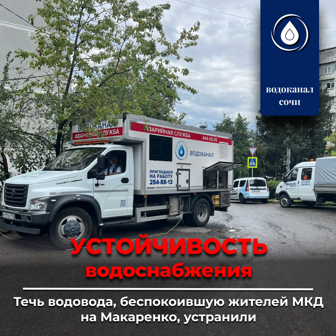 В Центральном районе Сочи ведут ремонтно-восстановительные мероприятия на разводящих сетях, пролегающих вблизи многоквартирного дома по улице Макаренко. Местных жителей беспокоила просачивающаяся со склона вода, которая накапливалась и вызывала подтопление технических помещений в подвале.