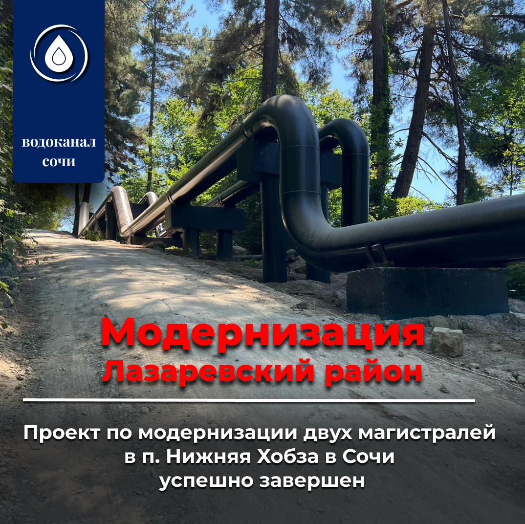Крупные магистральные водоводы, являющиеся стратегически важными коммуникациями Лазаревского района Сочи, успешно реконструированы на двух участках вблизи поселка Нижняя Хобза. Ранее здесь были выявлены особо аварийные локации, также часть сетей оказалась в зоне опасного движения грунта.