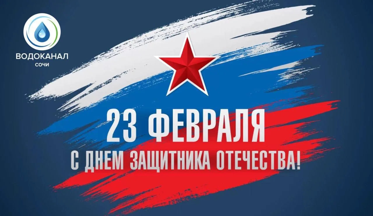 Дорогие наши защитники, МУП г.Сочи «Водоканал» сердечно поздравляет вас с праздником — Днём защитника Отечества!