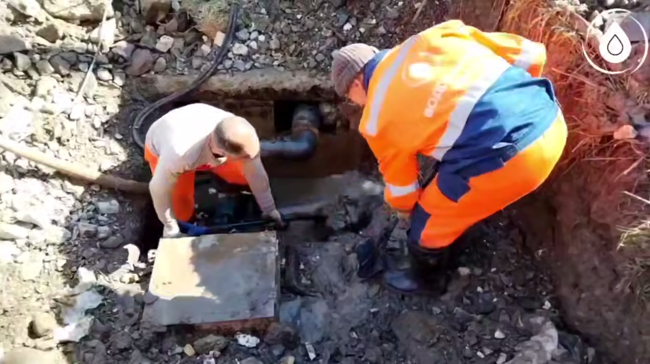 👷Специалисты МУП г.Сочи «Водоканал» производят работы по ул. Защитников Кавказа, Красная поляна.