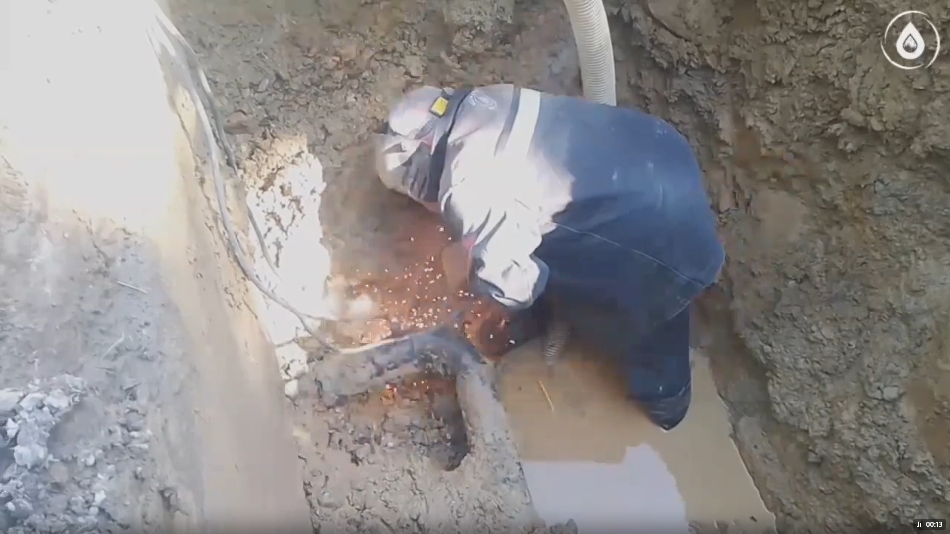 Сотрудники аварийной бригады с помощью специализированной техники обеспечили доступ к местам повреждений водовода. Следующим этапом проводятся сварочные работы.