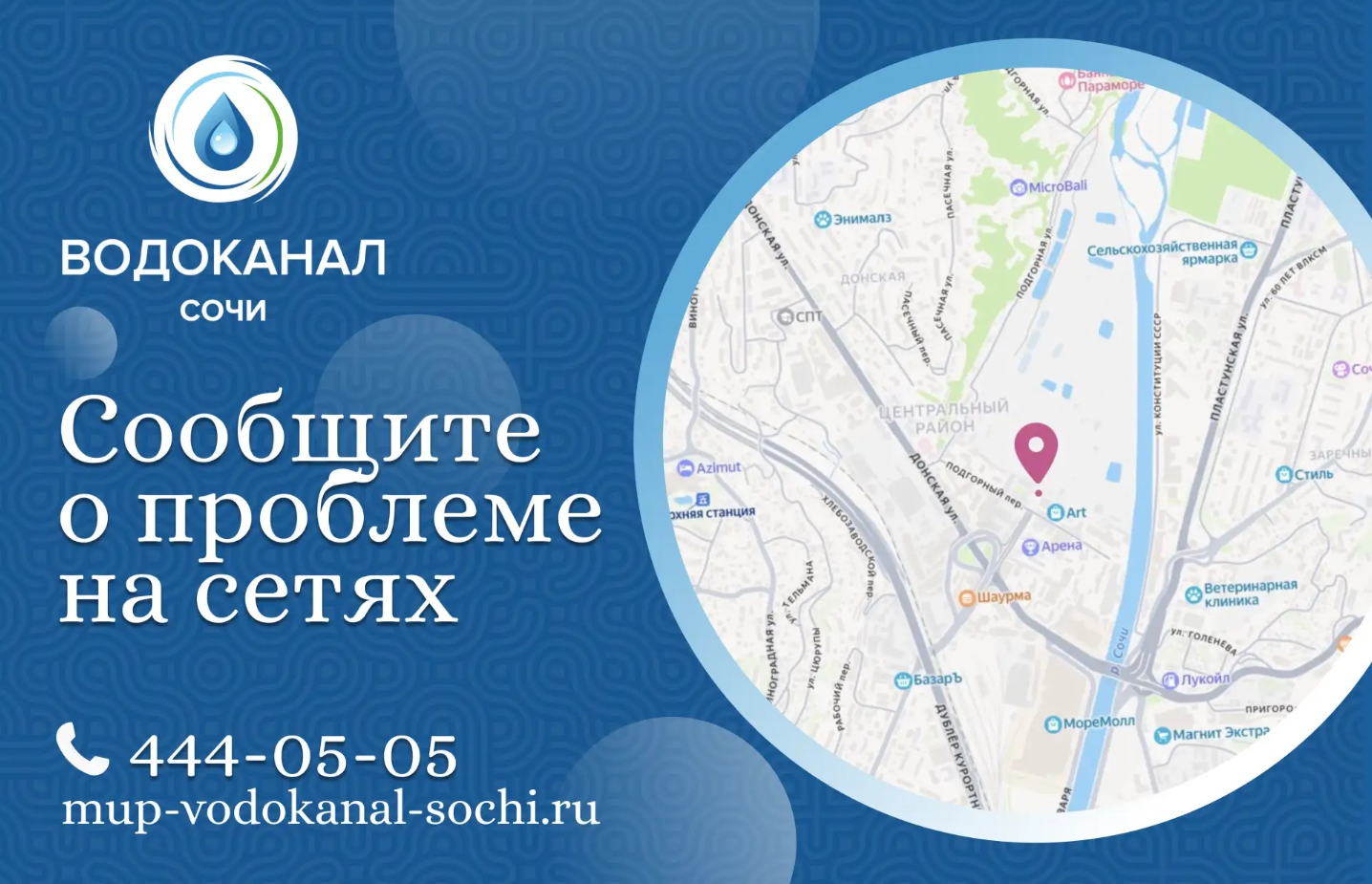 Если вы стали свидетелем нештатной ситуации: утечки, засора, отсутствия люка, незаконного подключения, либо иного нарушения на сетях водоснабжения или водоотведения, просим вас незамедлительно проинформировать нас любым удобным способом: