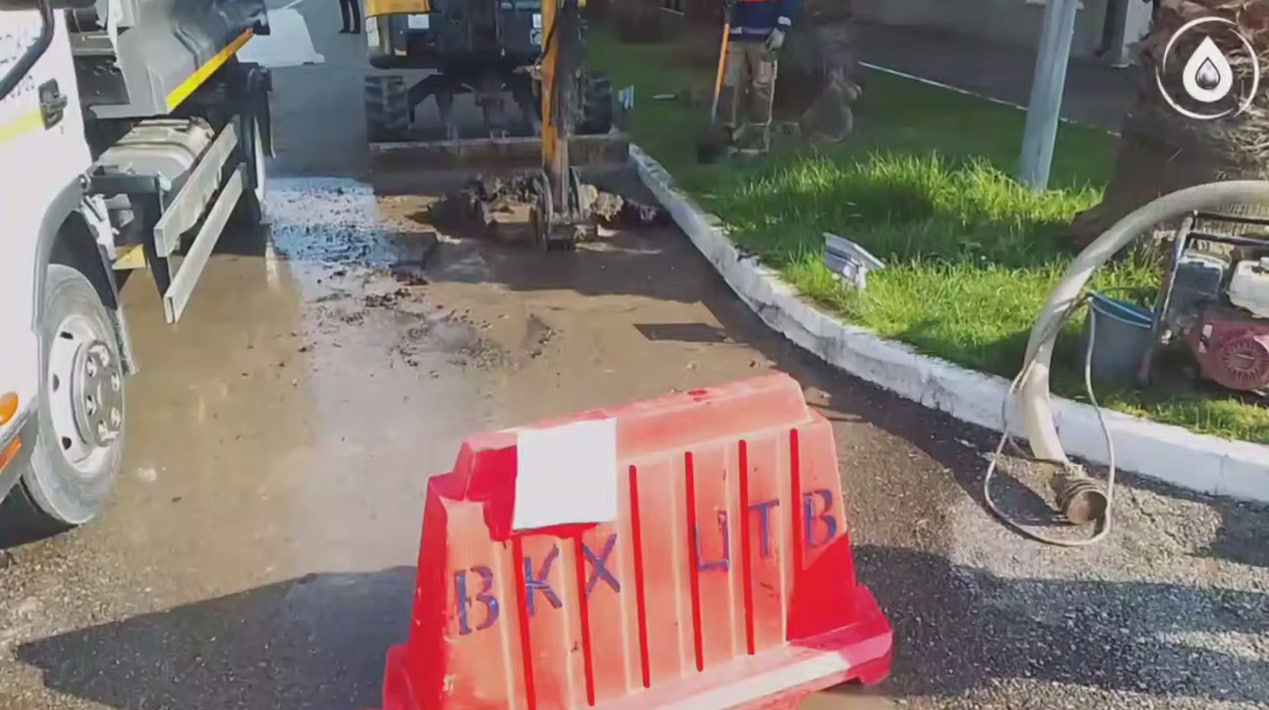 👷♂️Аварийно-восстановительная бригада МУП г.Сочи "Водоканал" устраняет нештатную ситуацию на трубопроводе диаметром 125 мм расположенном по ул.Советская.