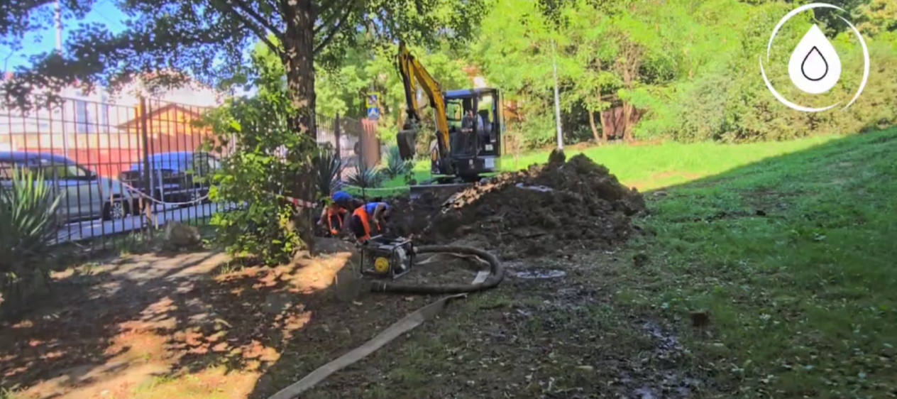 Аварийная бригада МУП г. Сочи «Водоканал» приступила к устранению нештатной ситуации на водоводе диаметром 150 мм пролегающем на территории гимназии № 6 по ул. Макаренко 8а.