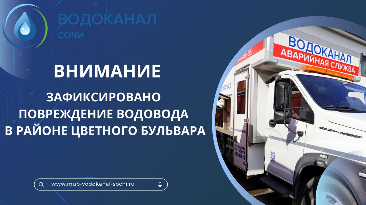 ⚡️Сообщаем, что МУП «Водоканал» города Сочи зафиксировал повреждение крупного водовода диаметром Ду 500 мм.